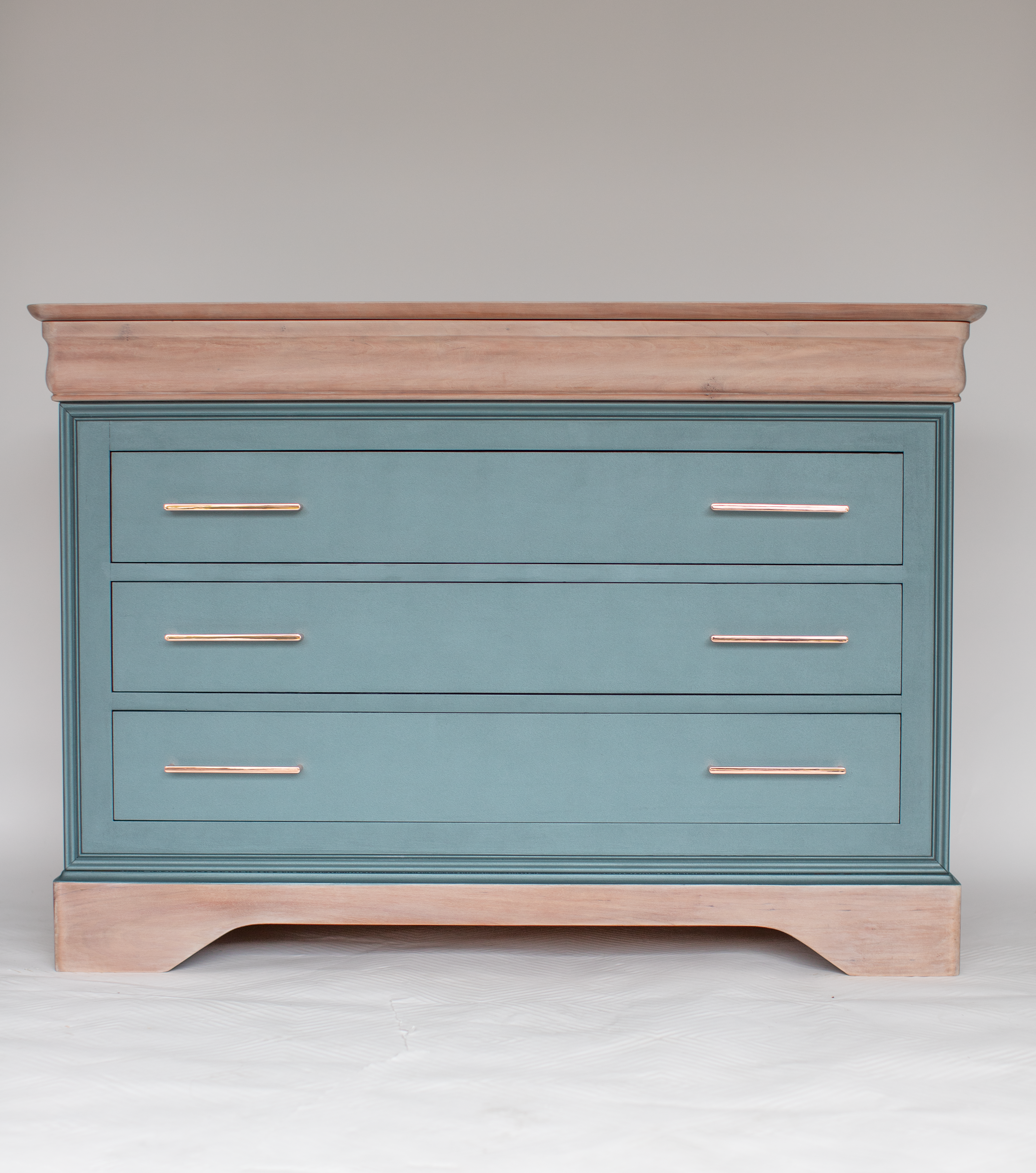 Découvrez le London, une commode issue de la production Grange en merisier, totalement revisitée avec une touche cosmique ! Mesurant 118 cm de large, 52 cm de profondeur et 82,5 cm de hauteur, ce meuble comporte 4 tiroirs pour un rangement élégant. Les poignées utilisées, soigneusement sélectionnées chez @laquincailleriesaintgermain , ajoutent une touche de modernité.